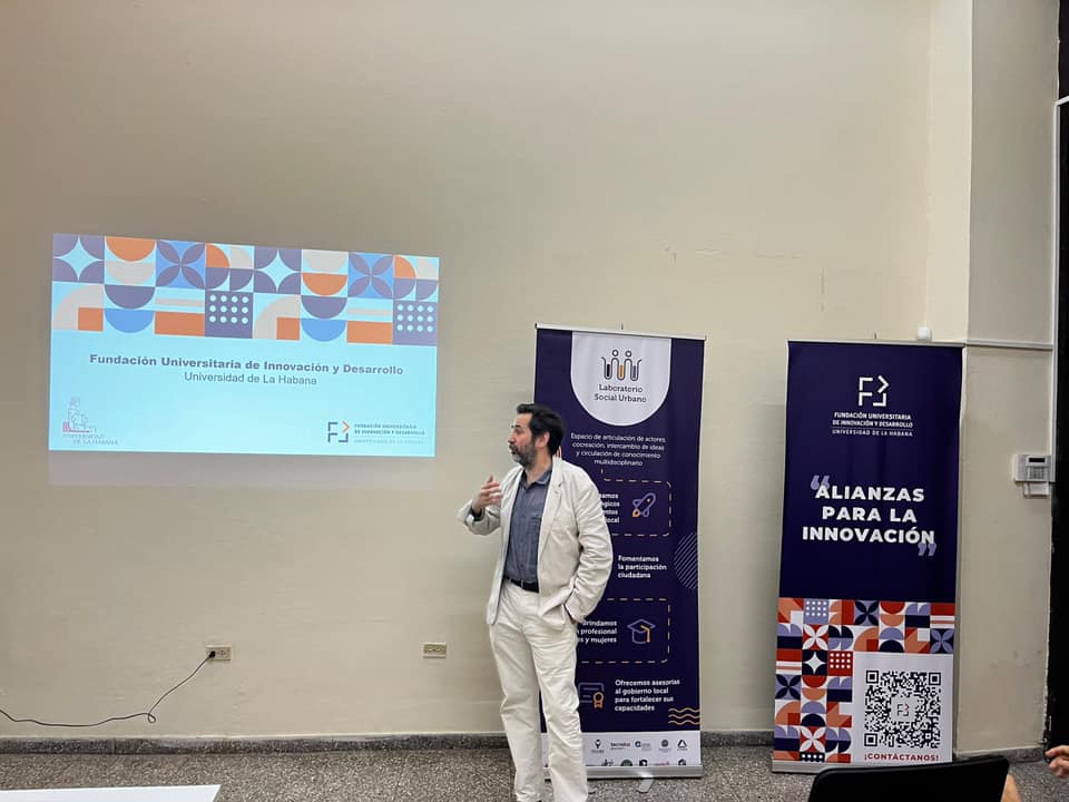 En un segundo momento, la delegación visitó el Laboratorio Social Urbano (LSU), nodo de innovación de la Fundación UH, ubicado en el municipio de Centro Habana. Durante el recorrido, se presentaron los principales resultados e impactos de la alianza estratégica entre la Fundación UH, la Fundación Tecnalia Research & Innovation y la AVCS; a través del proyecto “Conectando los Ecosistemas de Innovación Cuba-Euskadi (CEiCE)”, enmarcado en el convenio bilateral suscrito en 2020 entre los gobiernos de Cuba y el País Vasco. A lo largo de sus distintas etapas, el programa ha priorizado áreas estratégicas de cooperación como la salud, la economía circular, la transición energética y el desarrollo local; conectando a múltiples agentes de ambos ecosistemas.
